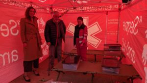 Qui ha passat este dimecres al matí per la plaça del Mercat ha sigut testimoni d’un desplegament excepcional d’Acció Urgent. Una carpa roja, muntada prop de les escales centrals, cridava l’atenció. En ella es podia llegir ‘Hospital de campanya’. En el seu interior es mostrava el material recentment adquirit per Acció Urgent gràcies a una donació de la Fundació La Caixa, de 3.000€. De fet, este matí la cap d’àrea de la Marina Alta i la Safor de l’entitat financera, Carmen Gómez Gil, ha fet l’entrega simbòlica d’un xec gegant amb la quantitat donada.