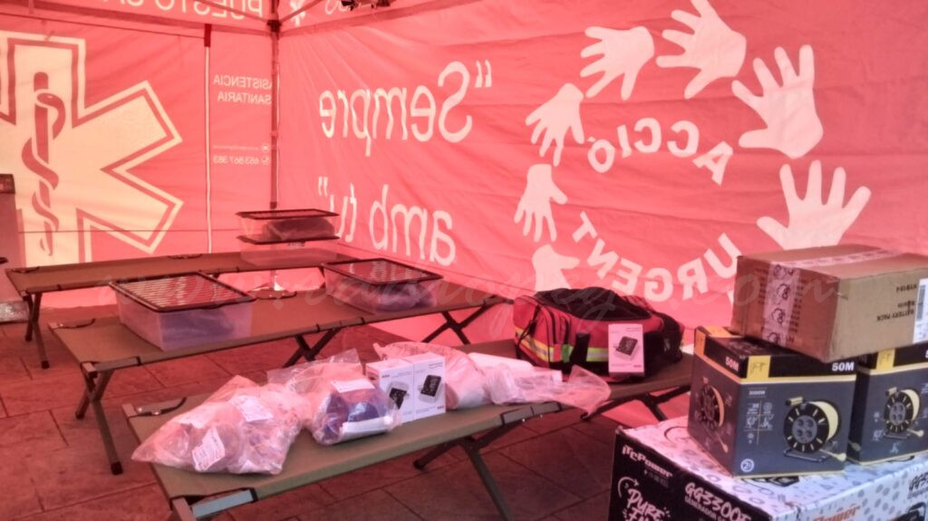 Dimecres al matí s’ha pogut veure tot el material recentment adquirit per l’associació d’atenció a les emergències que inclou lliteres, tensiòmetres, cadires, taules i un motor. Materials que els permeten millorar la resposta en situacions amb gran afluència de gent.