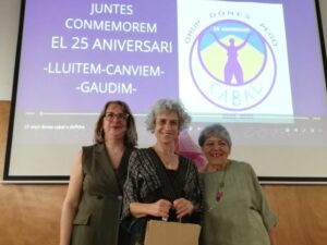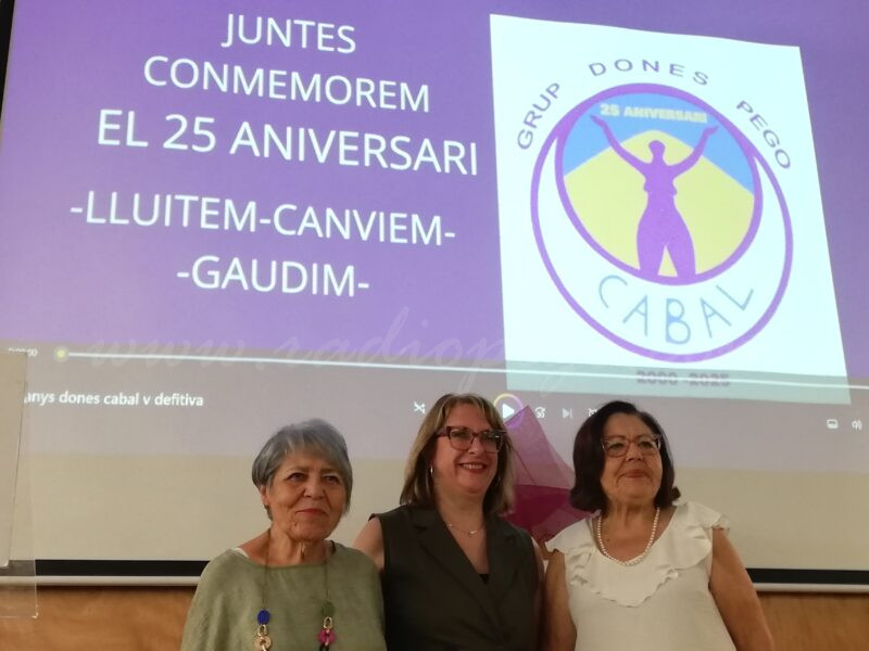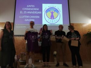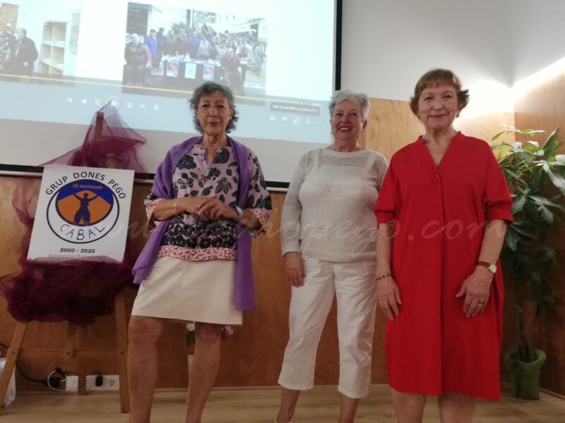 Per a repassar el quart de segle, Dones Cabal va projectar un audiovisual de resum amb el que també va voler retre donatge a tres sòcies que ja no hi són al grup: Maria Siscar, Reme Guardado i Amparo Mengual. Així mateix, va convidar a pujar a l’escenari la primera presidenta del grup feminista, Pau López, la primera secretària, Rosa Carrió i una altra de les fundadores, Remei Sendra.