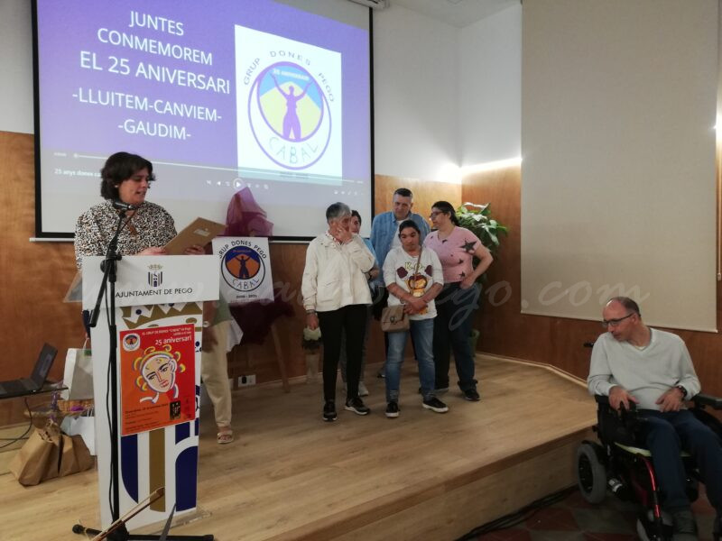 En la recta final de l’acte de celebració, la presidenta actual de Dones Cabal, Carmina Dominguis, manifestava que “enguany és un any molt especial perquè fem 25 anys d’activitats i, mirant-ho en perspectiva, han estat una infinitat d’actes els que hem organitzat”. Hi destacava Dominguis que en el rere fons d’eixes activitats la fita sempre ha estat “erradicar la violència masclista”.