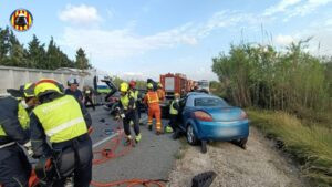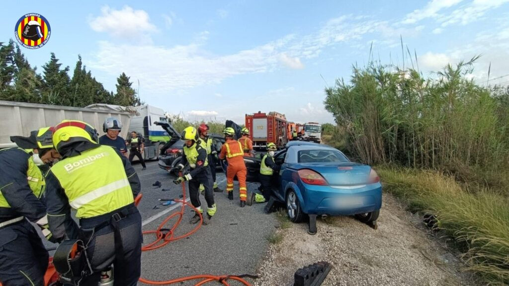 El xoc deixa dos persones ferides que han hagut de ser excarcerades pels bombers dels parc de Gandia i Oliva, junt amb efectes de Dénia, del consorci provincial d’Alacant.