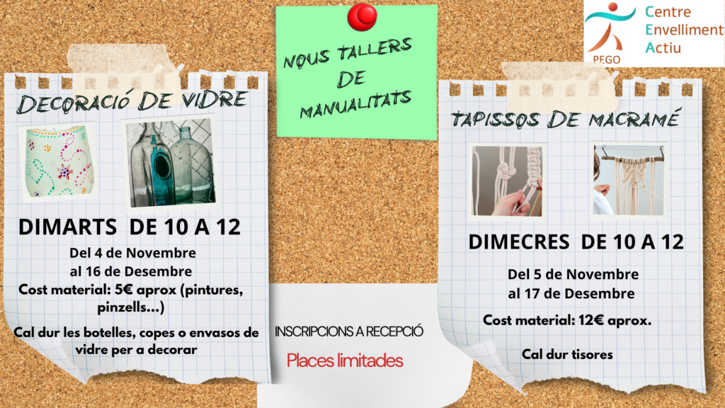 A partir de la primera setmana de novembre, els usuaris i les usuàries del Centre d’Envelliment Actiu de Pego tenen l’oportunitat d’aprendre a decorar vidre, a crear tapissos de macramé,