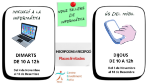 Les inscripcions als nous cursos són limitades i les podeu fer a la recepció del Centre d’Envelliment Actiu. Animava Anna Pàrraga a apuntar-se als nous tallers, però, en general, feia una invitació a aprofitar-se’n del que oferix el CEA, atès que “cada dia és una nova oportunitat per viure, aprendre i compartir”.