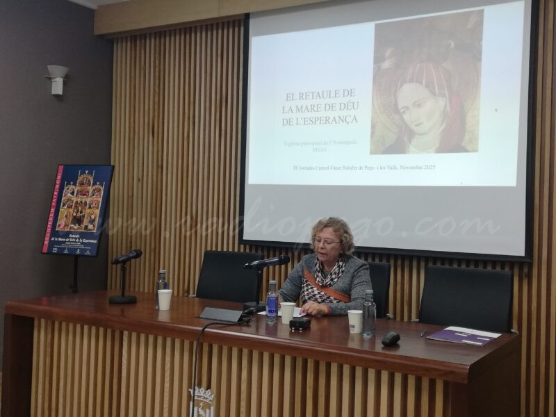 Una afirmació que va realitzar durant la conferència impartida en les IX Jornades d’Estudis Carmel Giner Bolufer, celebrades a finals del passat mes de novembre, a la Casa de Cultura de Pego. L’obra, atribuïda a Antoni Peris, la va situar “en els inicis del segle XV” dins el gòtic internacional.