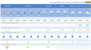Actualment l’Agència Estatal de Meteorologia manté activat, fins a les 18:00h., l’avís taronja per fortes pluges, que poden deixar acumulats de 30/40 l/m² en una hora i demà el rebaixa a groc, podent-se acumular 20 l/m² en una hora. No obstant això, els models indiquen que la pluja arribarà, sobretot a l’interior, a les Valls esta vesprada i demà dimecres «les pluges si que podrien ser més generals i fortes» a Pego, descriu MeteoPego. És per això que s’ha decidit que esta vesprada, cap a les 19h es tornarà a reunir el CECOPAL a l’Ajuntament de Pego per a analitzar l’evolució dels models i decidir que es fa demà.