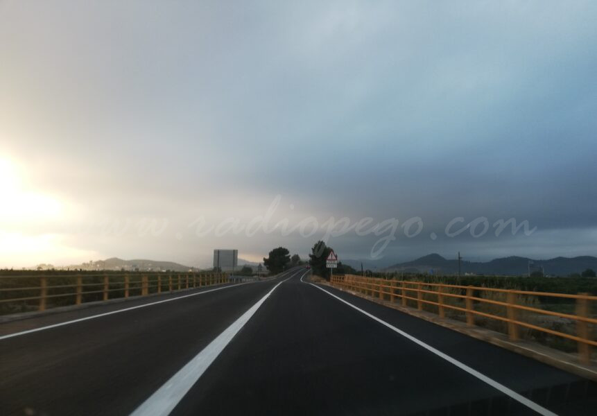 La CV-715 que unix Pego amb Oliva i viceversa ja està completament asfaltada de nou. Des d’este matí, l’últim tram que queda per executar, el pont que salva el pas de l’AP-7, està finalitzat. Ja no es veuen màquines pels voltants esperant a la nit per actuar. Així mateix, la pintura de senyalització de la via ha passat de groga (que indica obres) a blanca, en tot el tram.