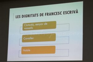 Francesc Escrivà, com a ciutadà de Pego, va comprar dos senyories, la de Favara i la de Benirredrà. Era una manera d’accedir a la noblesa, tot i que no sempre s’aconseguia. No obstant això, amb la compra s‘aconseguia ser senyor de vassalls, el que “posava en contacte directe amb la noblesa, apunta Francesc Barber. Finalment, però, en el cas que ens ocupa, Francesc Escrivà sí que accedirà a la noblesa, serà noble de privilegi perquè compra una dignitat. Escriviu al rei, a través delConsell d’Aragó, que és l’intermediari, primer demanant un títol de cavaller i després en demana un de noble“.