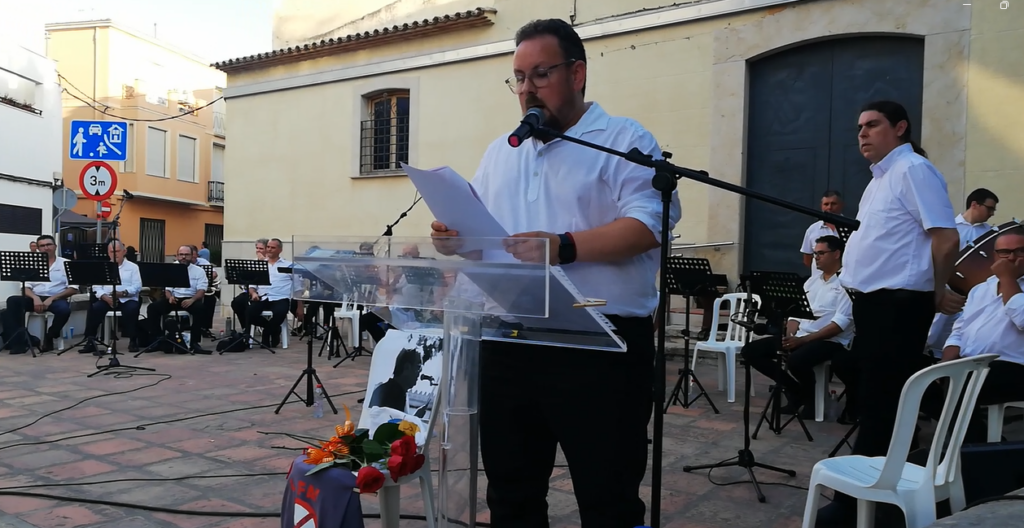 Estes paraules les pronunciava el membre de La Clandestina des del faristol situat al costat d’una cadira amb una foto de Xavi Morant parlant pel micròfon mentre llig uns papers, segurament el guió de presentació d’un concert de la colla pegolina. Des d’eixe lloc privilegiat l’esperit lliure d’en Xavi Morant va poder escoltar l’estrena de la peça ‘A Xavi Morant, un pegolí d’Ador. Rapsòdia mantalcollera’, composta especialment per a l’ocasió per La Clandestina.