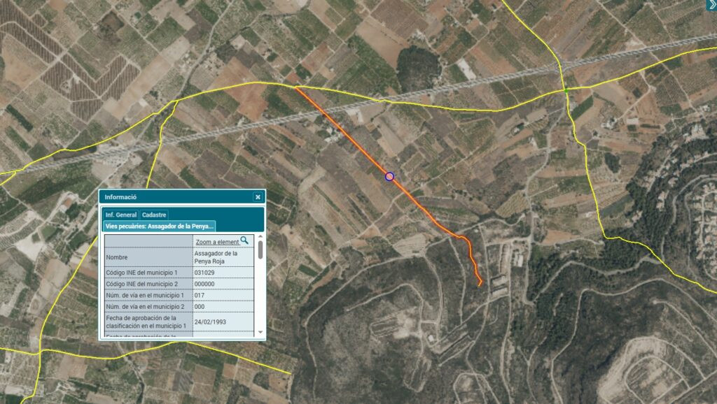 Defensen les dos associacions pegolines que “en la capa de Vies Pecuàries [de la Generalitat] es pot veure l’Assagador de Penya Roja perfectament registrat”.