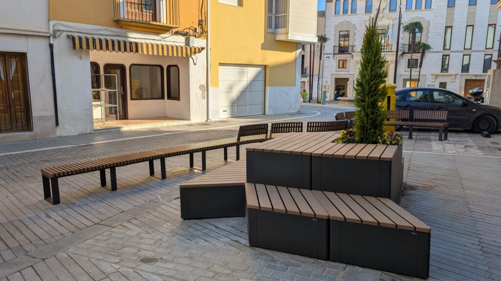 Una intervenció que s’ha plantejat després d’analitzar les característiques de la plaça i barallar diverses opcions. El disseny triat compta amb “un banc allargat [amb una part amb forma ondulada] que li dona molta vida a la zona”, comenta Sendra que també intuïx que serà un element “molt utilitzat per la gent en molts actes o en molts dies”. Bancs que afavorixen el descans i la convivència veïnal.