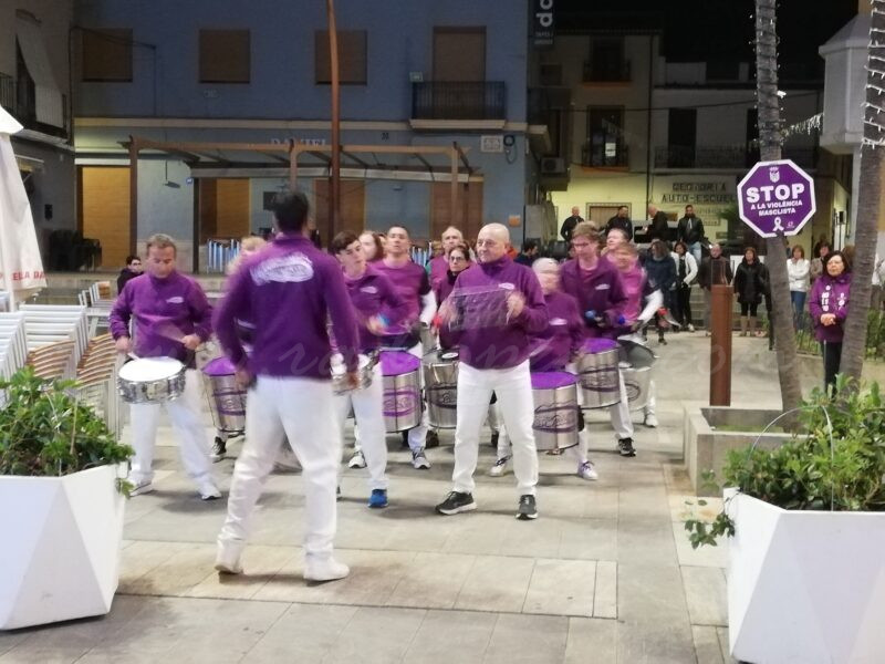 Al ritme de Batugària es va iniciar anit la marxa contra la violència masclista a Pego. Des de la plaça de l’Ajuntament fins a la plaça de Maria Cambrils una representació de pegolins i pegolines van mostrar el seu rebuig a la violència contra les dones, una violació flagrant dels drets humans que s’exerceix com a manifestació de la discriminació i de la situació de desigualtat en el marc d’un sistema de relacions de poder dels homes sobre les dones.