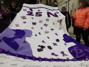 el tapís realitzat per les boixeteres en motiu del 25N, “una mostra del que significa aquesta lluita i la necessitat d’entrellaçar-nos i donar-nos suport les unes a les altres, donant l’oportunitat també a joves de col·laborar i formar part d’aquest projecte”.