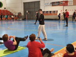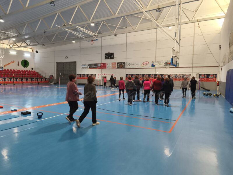 Hui ens hem colat en una classe de gimnàstica de manteniment, la del grup més nombrós (totes dones), de la qual 7 alumnes participaran en el VIII Olímpics. Hem parlat amb dos d’elles, Amparo Arbona Company i Milagros Ceresola Sendra. Les dos repetixen experiència perquè, com explica Amparo “s’ho passen bé”, al que afegix Milagros que és “una experiència nova, una cosa que no hem fet de joves i que ara tenim l’ocasió de fer-ho”. Apunta també Milagros que fa comboi perquè “t’ajuntes en la gent de tots els pobles, gent gran” i cal aprofitar l’oportunitat de poder compartir experiències d’este tipus, ja que de joves no ho van poder fer.