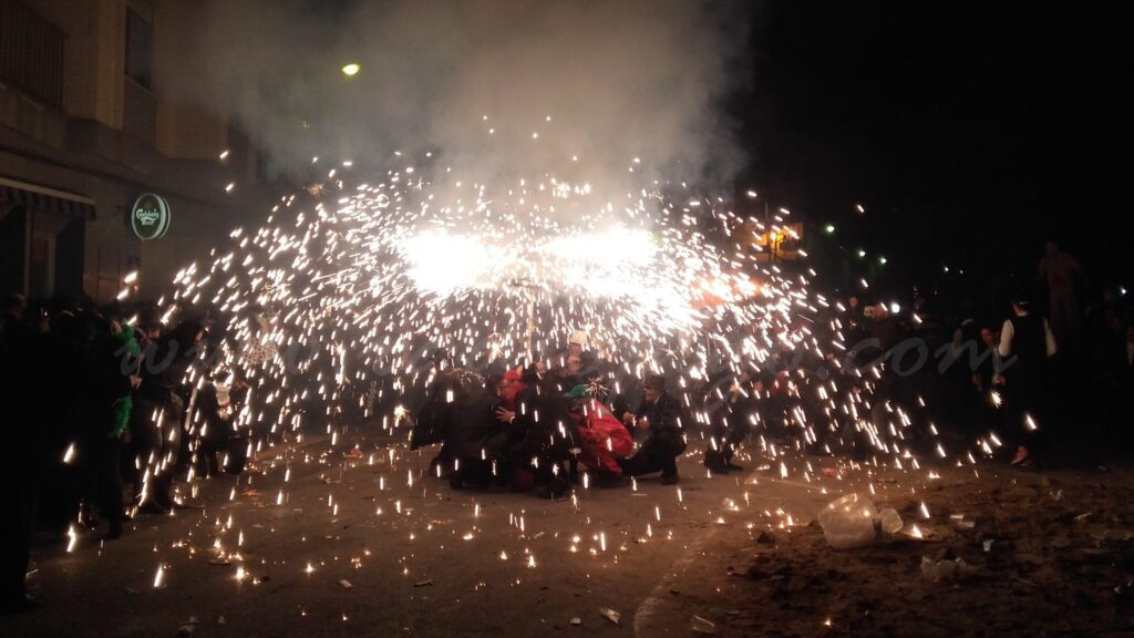El foc, el de la foguera del Pla de la Font i, el del correfocs, enguany a càrrec de la colla de Dimonis de Massalfassar que van convidar el públic a ballar baix les espurnes de les seues bèsties de foc.