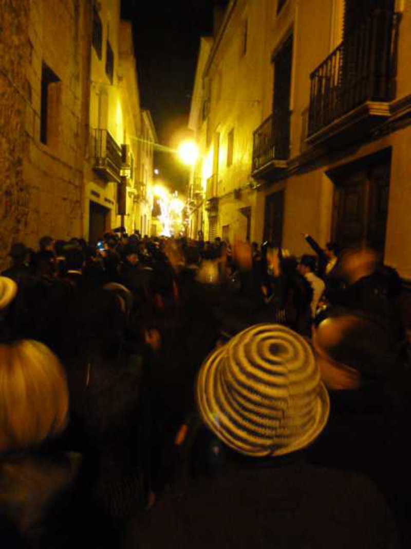 Un so ambient que, per si sol, transmet l’estima dels pegolins i les pegolines per la Pinyata, com també ho transmeten els rostres dels milers de participants en la desfilada de l’enterro de la sardina. Milers de rostres somrients, amb un maquillatge que, en moltes ocasions, supera en originalitat el de Carnestoltes, amb els vestits de negre dominant, però també amb tocs de colors vius, intensos -cada vegada més abundants la nit de Pinyata. Es respirava en l’ambient que pegolins i pegolines senten predilecció per la Pinyata (adults i joves).