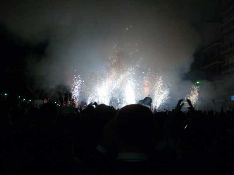 Este correfoc, enguany a càrrec dels dimonis de Pedreguer ‘Coet i corda’, finalitzava al mateix punt, al pla de font, amb gran presència de coets i de gent que els seguia i es banyava amb les seues espurnes.